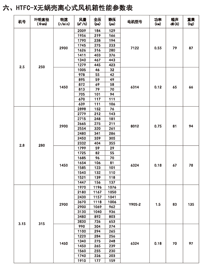 三、SWF-IV(HL3-2A)、HTF-PY(PYHL-14A)系列节能混流风机