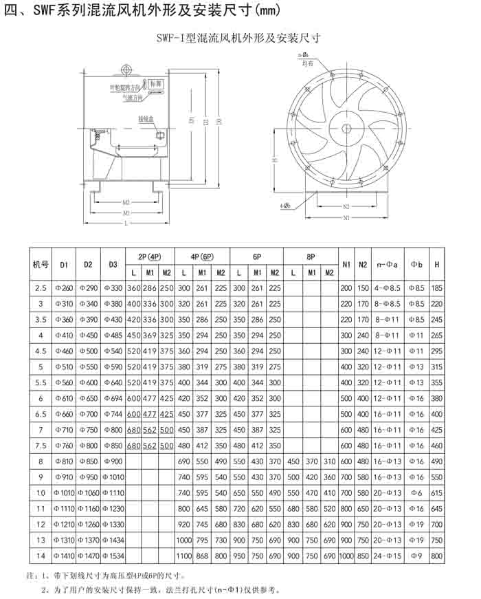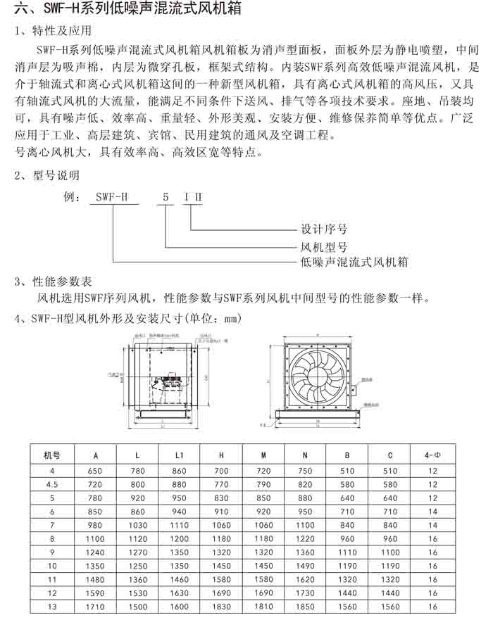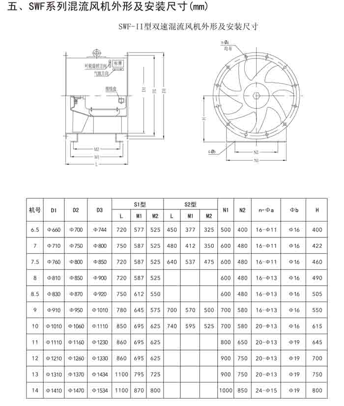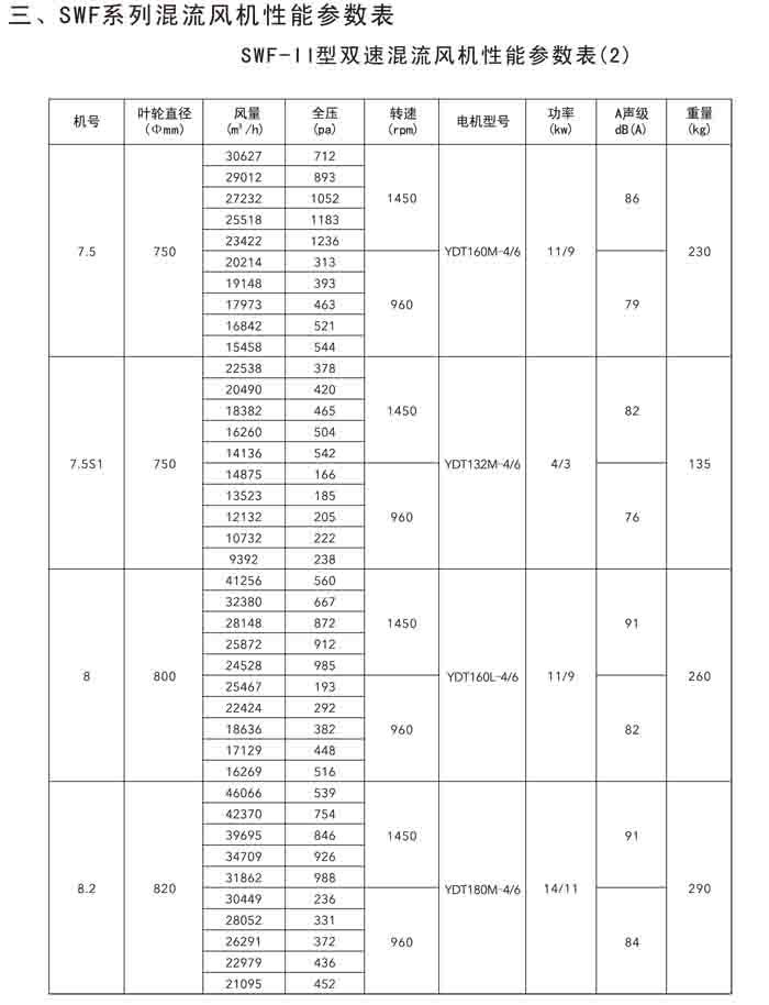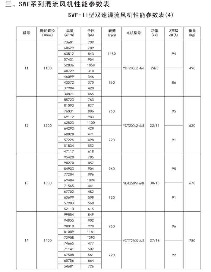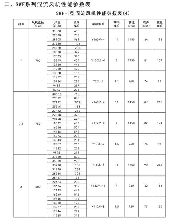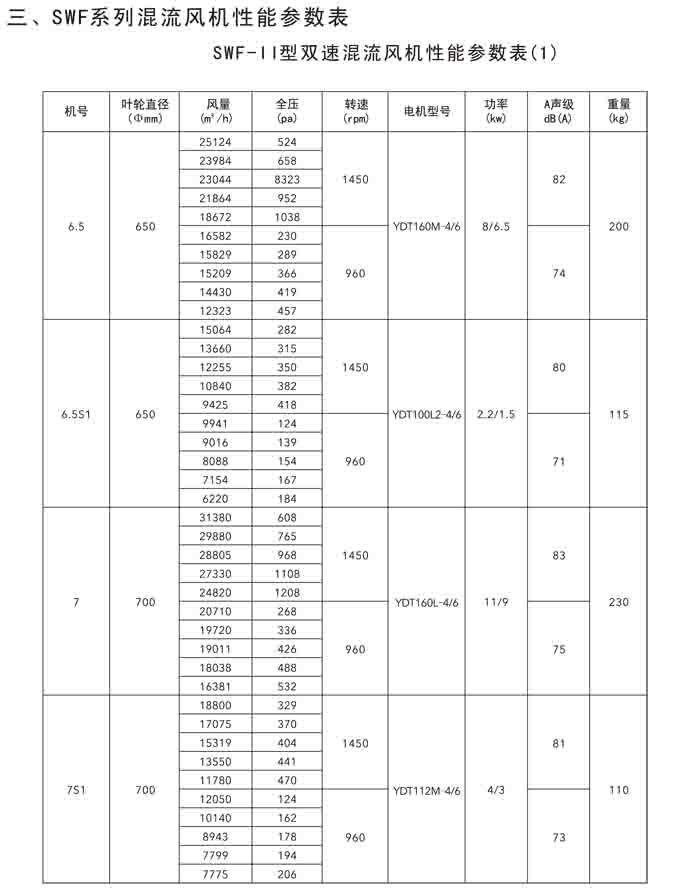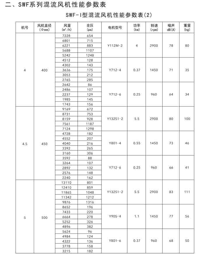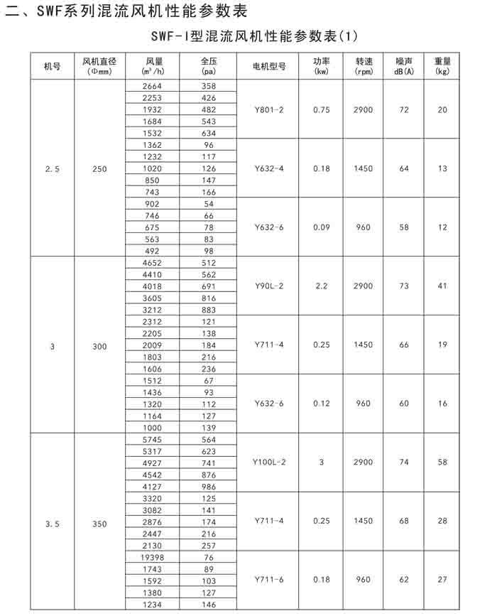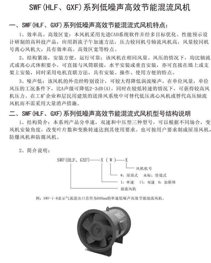 二、SWF(HLF、GXF)-I、II、H 系列高效混流风机