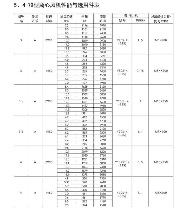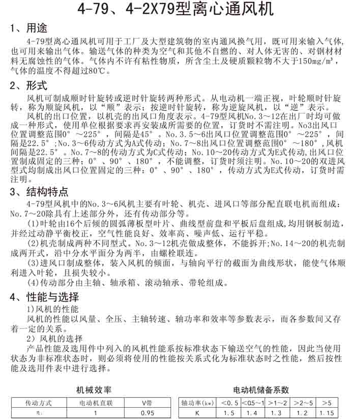 一、4-72(B4-72)、4-79(4-2*79)离心风机