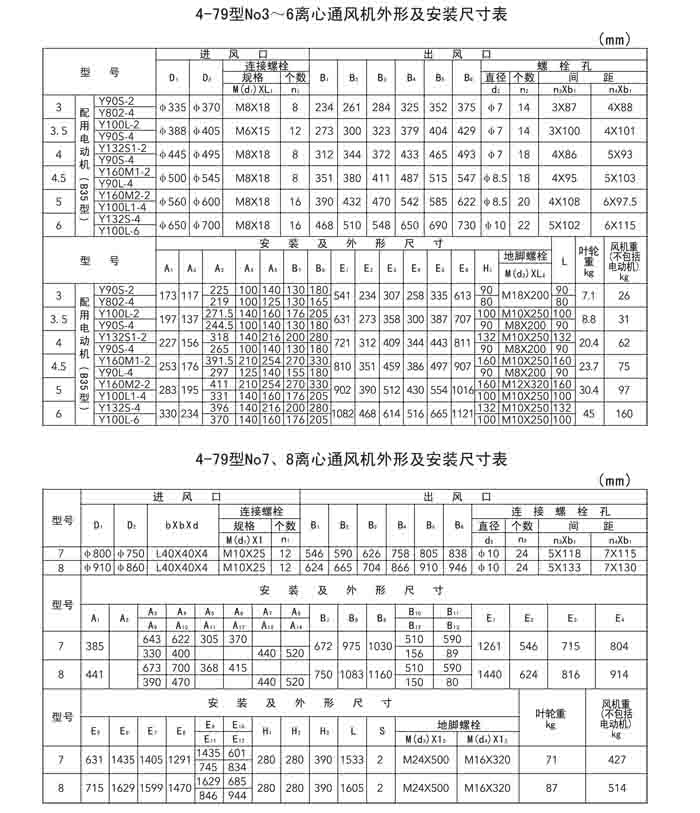一、4-72(B4-72)、4-79(4-2*79)离心风机