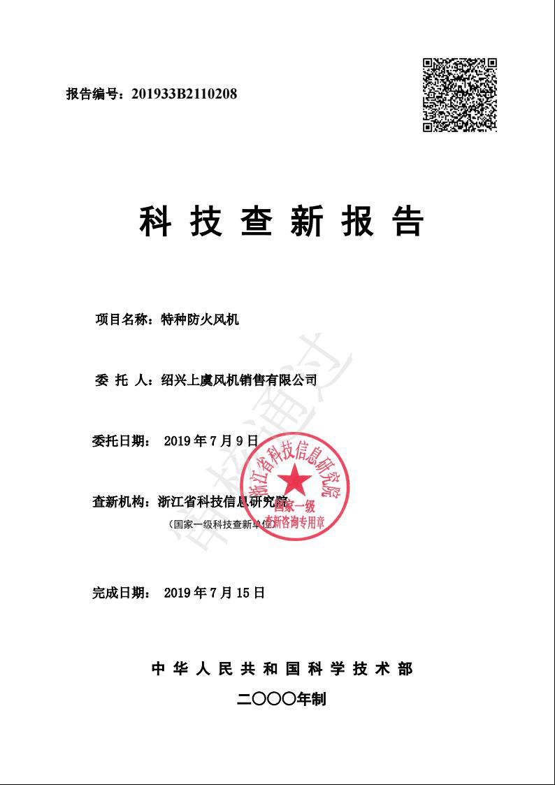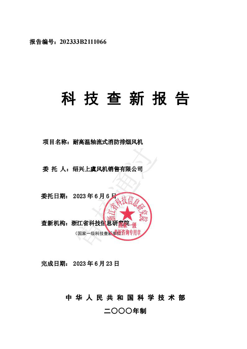 科技查新报告(耐高温消防排烟风机)