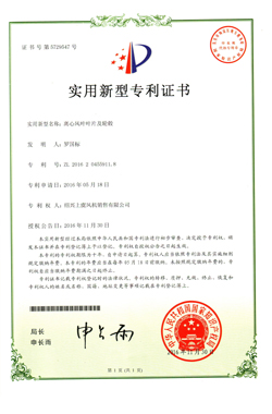 离心风机叶片及轮毂专利证书