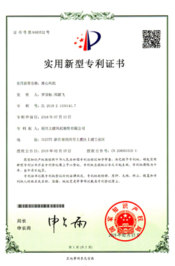 离心风机专利证书